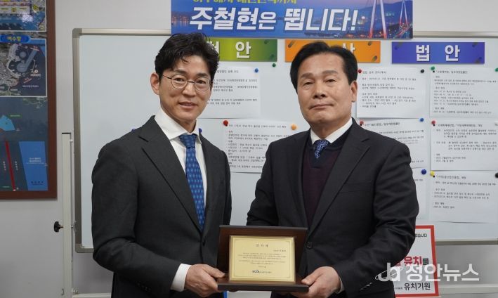 정안뉴스 안정주 기자 | 더불어민주당 주철현 국회의원(전남 여수시갑)은 22일 한국화학산업협회로부터 국가기간 산업인 석유화학산업의 위기 극복과 경쟁력 강화를 위한 공로로 감사패를 받았다.
