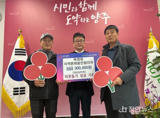 신동주 옥정2동장은 “지역사회를 위해 지속적으로 나눔을 실천해 주시는 옥정동 지역문화발전협의회에 깊은 감사를 드린다”며 “기탁된 성금은 관내 도움이 필요한 취약계층을 대상으로 투명하고 공정하게 지원해 따뜻한 온정이 잘 전달될 수 있도록 하겠다”고 전했다.