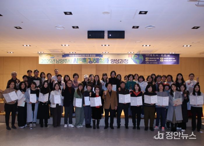 정안뉴스 안정주 기자 | 남양주시는 22일 금곡양정행정복지센터 6층 다목적공연장에서 기후위기 대응과 지역사회 환경교육의 핵심 역할을 수행할 ‘2025년 시민환경해설사 양성과정’ 수료식을 개최했다.