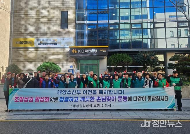 정안뉴스 황정혜 기자 | 부산 동구 범일2동은 지난 12월 18일 해양수산부 임시청사 개청을 앞두고 조방상권 활성화를 위한 손님맞이 도시환경정비를 실시했다.