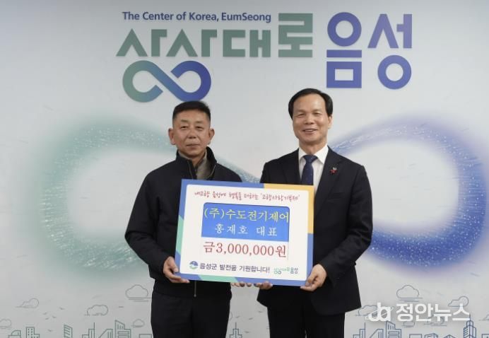 정안뉴스 황은경 기자 | ㈜수도전기제어 홍재호 대표가 지난 22일 음성군에 고향사랑기부금 300만 원을 전달했다.