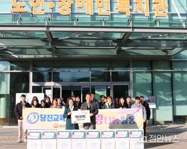 정안뉴스 황도연 기자 | 당진교육지원청은 22일 연말연시를 맞아 당진 지역의 노인 및 사회복지시설 8곳을 방문해 ‘사랑나눔 봉사활동’의 일환으로 떡국떡을 전달했다.