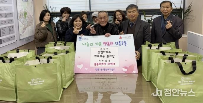 정안뉴스 안정주 기자 | 지난 22일, 수원특례시 영통구 영통3동 건영2차아파트 아모리움 자원봉사단에서 관내 독거 어르신과 한부모가정을 대상으로 물품꾸러미와 성금을 지원하는 나눔 활동을 진행했다. 이번 나눔은 앞서 열린 협약식 이후 추진된 나눔 활동으로, 지역사회 내 취약계층을 위한 실질적인 지원이 이루어졌다.