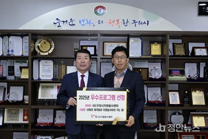 정안뉴스 안정주 기자 | 사단법인 구리시자원봉사센터는 12월 22일, 경기도자원봉사센터 공모사업인 ‘2025 지역맞춤형 지원사업’ 시군 네트워크 분야에서‘산 따라 계곡 따라, 자원봉사 하러 가는 길!’ 프로그램이 우수사업으로 선정됐다고 밝혔다.