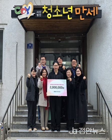 정안뉴스 황도연 기자 | 천안동남경찰서(서장 송해영)는 2025년 12월 22일 16시, 천안청소년자립지원관에서 청룡동 주민자치위원회(회장 윤봉화)와 천안시청 등 유관기관 참석 하에 후원금 전달식을 진행했다. 이번 전달식은 지역사회가 함께 뜻을 모아 도움이 필요한 청소년의 자립과 성장을 지원하기 위해 마련됐다.