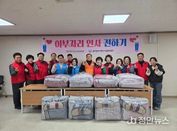 정안뉴스 안정주 기자 | 광주광역시북구시설관리공단(이하 ‘공단’)은 지난 17일 오치1동 주민자치회가 주최한 ‘이부자리 인사 전하기’ 행사에 참여해 겨울나기 이웃사랑 나눔 활동을 펼쳤다.
