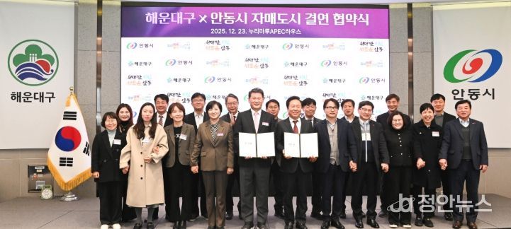 정안뉴스 황정혜 기자 | 해운대구는 12월 23일, 부산 누리마루 APEC하우스에서 경상북도 안동시(시장 권기창)와 자매결연 협약을 체결했다.