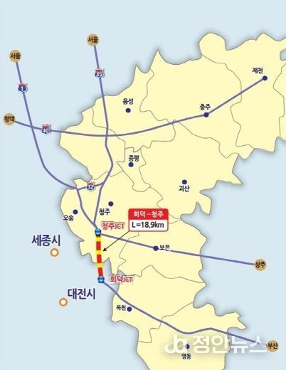 이재덕 충북도 도로과장은 “증평~호법, 회덕~청주 고속도로 확장사업이 예비타당성조사 대상사업으로 신규 선정된 것은 사업추진 당위성과 도민들의 염원이 반영될 결과”라며 “본격적인 사업추진을 위해서 예비타당성조사가 통과될 수 있도록 적극 노력하겠다.”고 밝혔다.