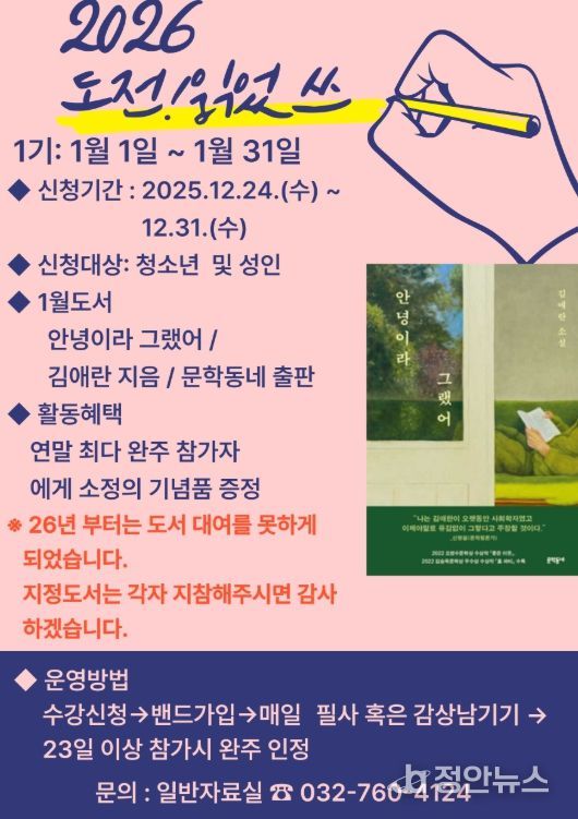 정안뉴스 안정주 기자 | 인천광역시교육청화도진도서관은 비대면 독서·필사 동아리 ‘2026 도전! 읽었쓰’를 운영한다