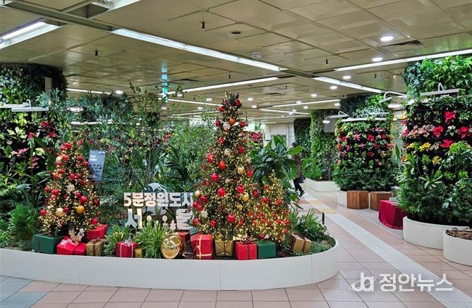 정안뉴스 안정주 기자 | 서울시는 연말을 맞아 지하철 역사 실내정원인 ‘서울 아래숲길’ 5곳에 계절의 감성을 더한 크리스마스 연출과 겨울 정원을 선보인다고 밝혔다.