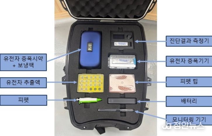 정안뉴스 안정주 기자 | 산림청 국립산림과학원은 최근 급증하는 소나무재선충병의 진단 수요에 대응하기 위해, 현장 실무자의 사용 편의성과 기동성을 개선한 ‘소나무재선충 유전자 현장 진단키트’를 현장에 보급한다고 밝혔다.