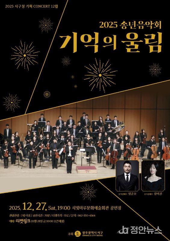 정안뉴스 안정주 기자 | 광주광역시 서구는 2025년 한 해를 마무리하며 오는 27일 오후7시 서빛마루문화예술회관에서 송년음악회 ‘기억의 울림’을 개최한다.