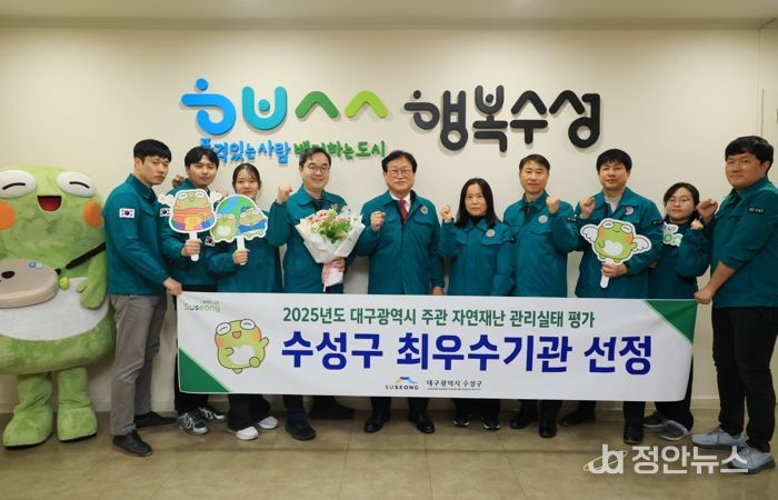 정안뉴스 안정주 기자 | 대구 수성구는 대구광역시가 주관한 ‘2025년 구‧군 자연재난 관리실태 평가’에서 최우수 기관으로 선정됐다고 밝혔다.