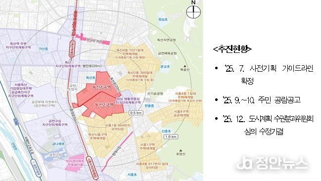 정안뉴스 안정주 기자 | 서울시는 2025년 12월 24일 '제14차 도시계획위원회 신속통합기획 정비사업 등 수권분과위원회'를 개최하여 ‘독산동 1036일대(독산1구역)’과 ‘독산동 1072 일대(독산2구역)’ 주택정비형 재개발사업 정비구역 지정 및 정비계획 결정(안)을 '수정가결' 했다고 밝혔다.
