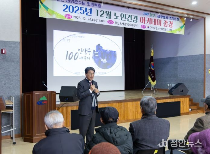 정안뉴스 황도연 기자 | (사)대한노인회 청양군지회(지회장 전석호)는 지난 24일 정산도서관 대강당에서 정산, 목, 청남, 장평 프로그램 참여자 및 관계자 등 100여 명이 참석한 가운데 ‘노인건강아카데미 종강식’을 성황리에 개최했다.