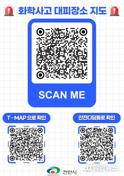 정안뉴스 황도연 기자 | 천안시는 ‘화학사고 대피장소 안내지도’를 5개 국어 리플렛과 QR안내판, 포스터 등 다양한 형식으로 제작해 배포했다고 26일 밝혔다.