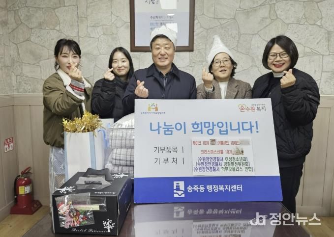 정안뉴스 안정주 기자 | 수원시 장안구 송죽동은 지난 24일 장안경찰서로부터 연말을 맞아 지역 내 조손가정 등 취약계층을 위한 후원 물품을 기부했다고 밝혔다.