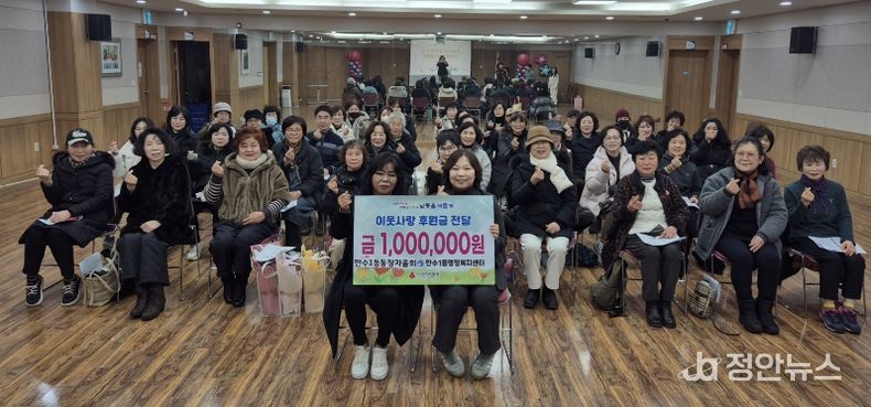 정안뉴스 안정주 기자 | 인천시 남동구 만수1동 행정복지센터는 통장자율회(회장 권은주)로부터 이웃사랑 후원금 100만 원을 전달받았다고 26일 밝혔다.