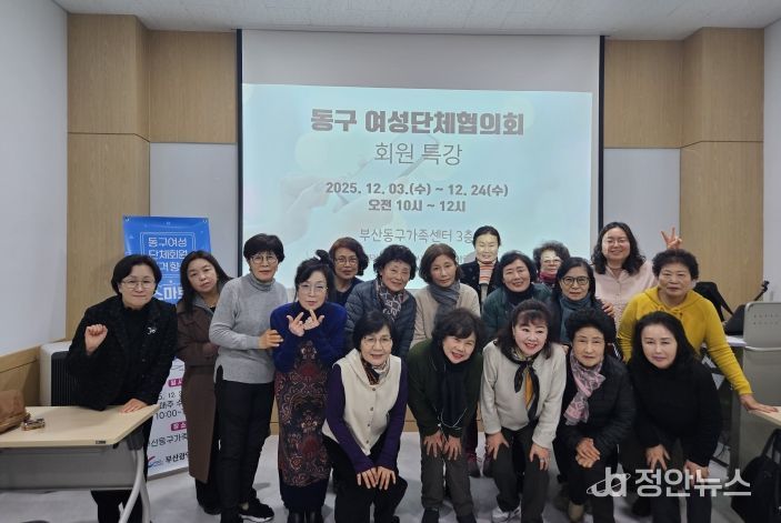 정안뉴스 황정혜 기자 | 부산광역시 동구는 여성과 가족이 함께 행복한 성평등 도시 동구 조성을 위한 노력의 일환으로, 동구여성단체 회원들을 대상으로 ‘2025년 품격향상 스마트 리더십 교육’을 11월 5일부터 12월 24일까지 진행했다.