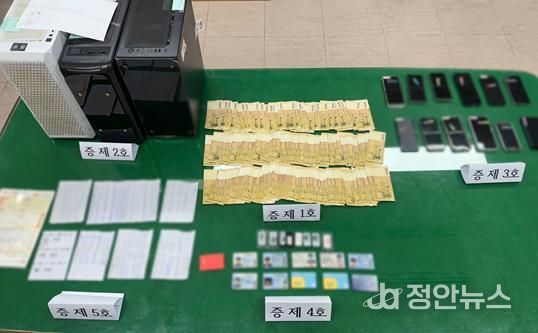 정안뉴스 황도연 기자 | 천안동남경찰서는 천안시 소재 오피스텔에 사무실을 차려놓고 약 100억 원 상당의 불법 도박 자금을 세탁해 준 혐의(도박공간개설방조 등)로 자금세탁 총책 등 조직원 15명을 검거하고, 이 중 2명을 지난 24일 구속했다고 밝혔다.