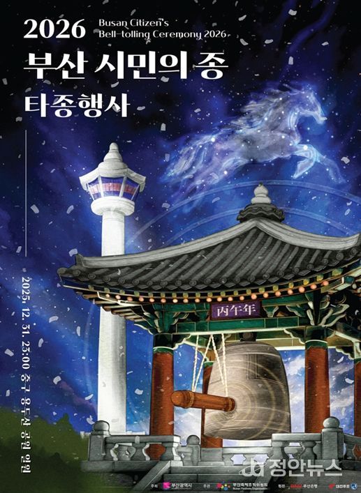 정안뉴스 황정혜 기자 | 부산시는 올 한 해를 마무리하고 다가오는 새해 첫 순간을 시민과 함께 맞이하기 위해 '2026 새해맞이 부산 시민의 종 타종행사'를 개최한다고 밝혔다.