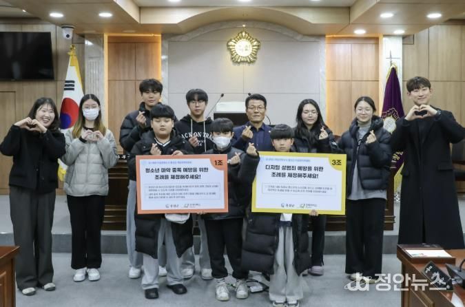 정안뉴스 황도연 기자 | 제5기 홍성군 아동참여위원회가 지난 29일, 홍성군 의회를 방문해 ▲청소년 마약 중독 예방 관련 조례 제정 ▲디지털 성범죄 예방을 위한 조례 제정을 제안해 눈길을 끌고 있다.