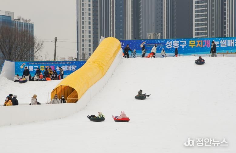 정안뉴스 안정주 기자 | 서울 성동구가 행당동 무지개텃밭(행당동 76-3)에 도심 속 겨울 놀이터 ‘성동구 무지개 눈썰매장’을 조성하고 오는 31일부터 내년 2월 8일까지 운영한다고 밝혔다.