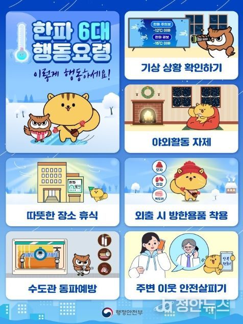 정안뉴스 안정주 기자 | 행정안전부는 오늘(30일) 경기·강원을 중심으로 한파 특보가 발표됨에 따라 김광용 재난안전관리본부장 주재로 관계기관 대책회의를 개최하고, 17시부로 한파 재난 위기경보 수준을 ‘관심’에서 ‘주의’ 단계로 격상한다고 밝혔다.