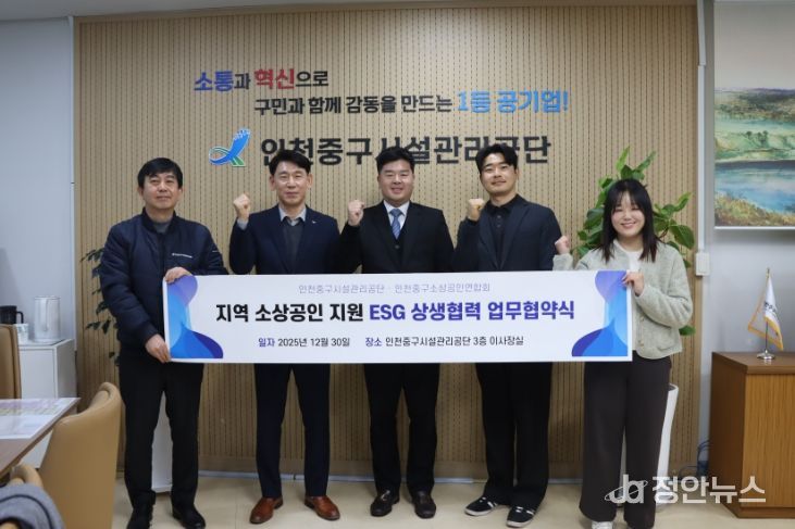 정안뉴스 안정주 기자 | 인천중구시설관리공단은 지역 소상공인 경영 안정과 지역경제 활성화를 위해 최근 ‘인천중구소상공인연합회’와 업무협약(MOU)을 체결했다고 2일 밝혔다.