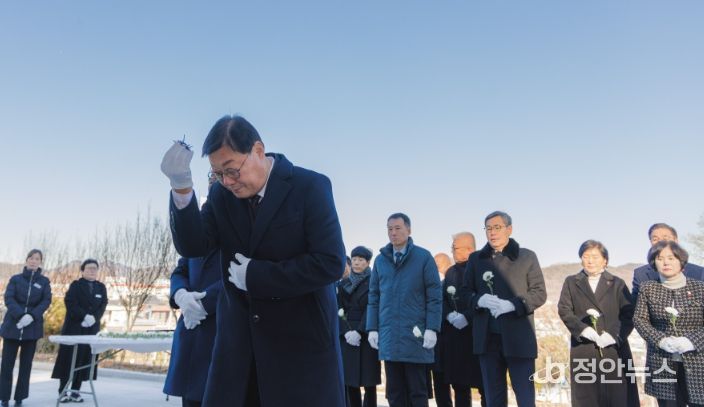 정안뉴스 김재홍 기자 | 합천군은 2026년 1월 2일 호국공원 충혼탑 및 일해공원 3.1독립운동기념탑에서 김윤철 군수, 정봉훈 군의회의장, 군의원, 간부공무원 등 50여명이 참석하여 참배로 공식 일정의 첫 문을 열며 한 해 군정의 출발을 알렸다.