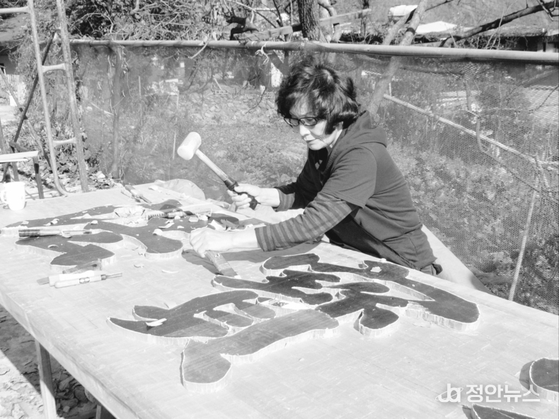 1979년 대덕서각전을 통해 첫 작품 세계를 선보인 그는 “서각은 단순히 문자를 새기는 기능이 아닌, 상징을 담는 예술”이라 강조해왔다. 실제로 그는 기능적 차원에 머물던 서각을 예술의 경지로 끌어올리기 위해 서예와 서각을 함께 갈고 닦았다. 1985년에는 대구서각연구회(현 미목서각회)를 발족해 격년제 전람회를 이어오며 대중과 소통했다. 또 1992년 한국미술협회 대구지회가 주관한 제12회 서예대전에서는 전국 최초로 서각 부문 공모전을 개최하는 계기를 마련, 이후 각종 공모전에 서각이 확산되는 발판을 만들었다.