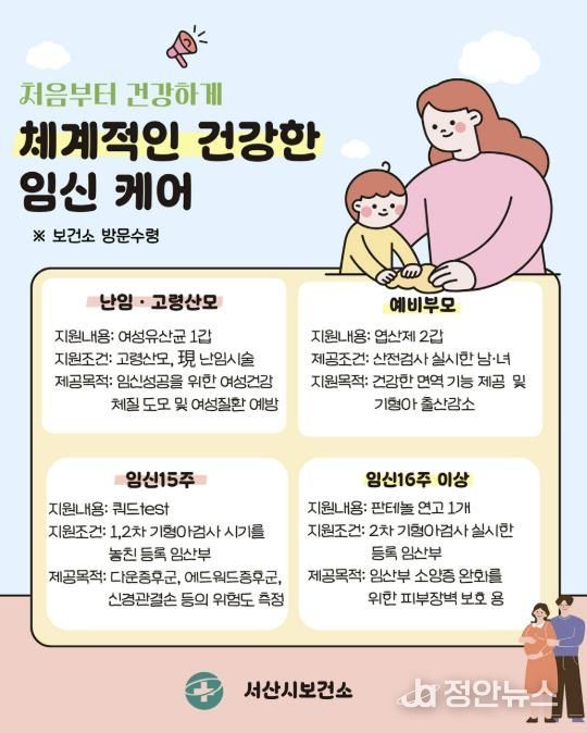 정안뉴스 황도연 기자 | 충남 서산시가 예비 산모부터 임산부까지 임신 단계별 건강 관리를 강화한다.