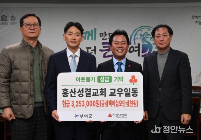 정안뉴스 황도연 기자 | 홍산성결교회(담임목사 김병준)는 지역 내 어려운 이웃을 돕기 위해 325만여 원의 성금을 부여군에 기탁했다고 6일 밝혔다.