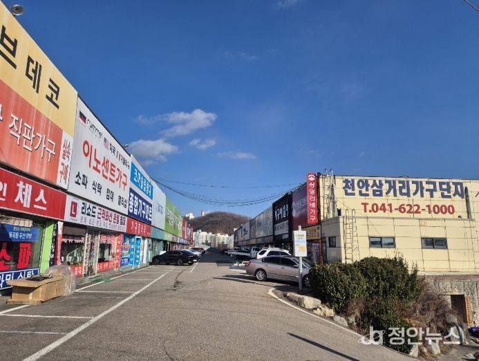 동남구 목천읍 일대에 조성된 천안삼거리 가구단지는 오랜 기간 지역을 대표해 온 가구 전문 상권이었으나, 그동안 제도적 지원 대상에서 제외되어 상권 활성화에 한계가 있었다.