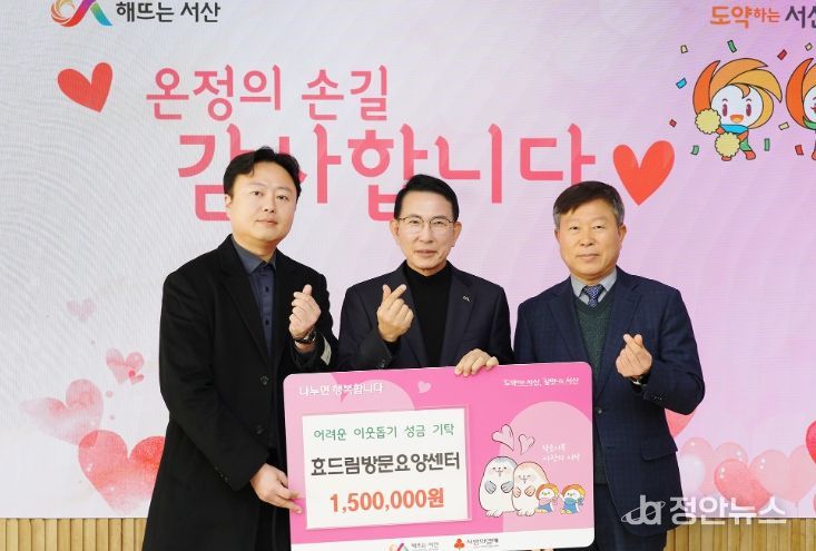 정안뉴스 황도연 기자 | 충남 서산시는 6일 효드림방문요양센터가 관내 어려운 이웃을 돕기 위한 성금 150만 원을 기탁했다고 밝혔다.