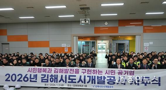 정안뉴스 김재홍 기자 | 김해시도시개발공사는 지난 2일 2026년 새해 시무식에서 전 직원이 청렴실천과 안전보건 결의를 다지며 힘차게 새해 첫 업무를 시작했다고 밝혔다.