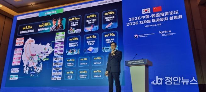 정안뉴스 김재홍 기자 | 경남도는 6일 중국 베이징에서 열린 산업통상부 주관 지자체 투자유치 설명회에서 경남의 투자환경을 홍보하며 중국 현지 투자유치 활동을 마무리했다고 밝혔다.