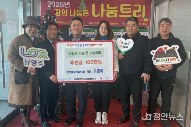 정안뉴스 안정주 기자 | 남양주시는 지난 5일 진건송능기업인회가 ‘진건읍, 사랑의 나눔존 나눔트리’ 행사에서 후원금 100만 원을 기탁했다고 7일 밝혔다.