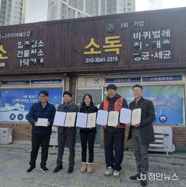 정안뉴스 황도연 기자 | 아산시 온양3동 행복키움추진단은 지난 7일 모종동 소재 코리아에코21(대표 신애란)과 지역사회 복지 증진을 위한 후원 협약을 체결했다.