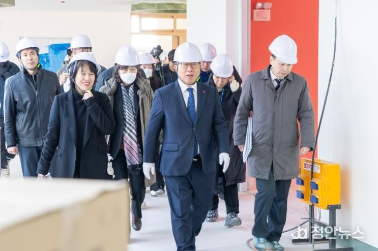 현장에서 김 교육감은 학교별 공사 진행 상황과 교실, 강당, 급식 시설 등 주요 교육 시설을 면밀히 살폈다.