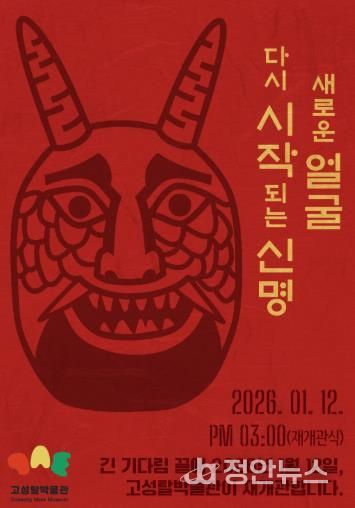 정안뉴스 김재홍 기자 | 고성군은 고성탈박물관의 리모델링을 완료하고, 1월 12일 오후 2시 40분부터 식전공연을 시작으로 재개관 행사를 개최한다.