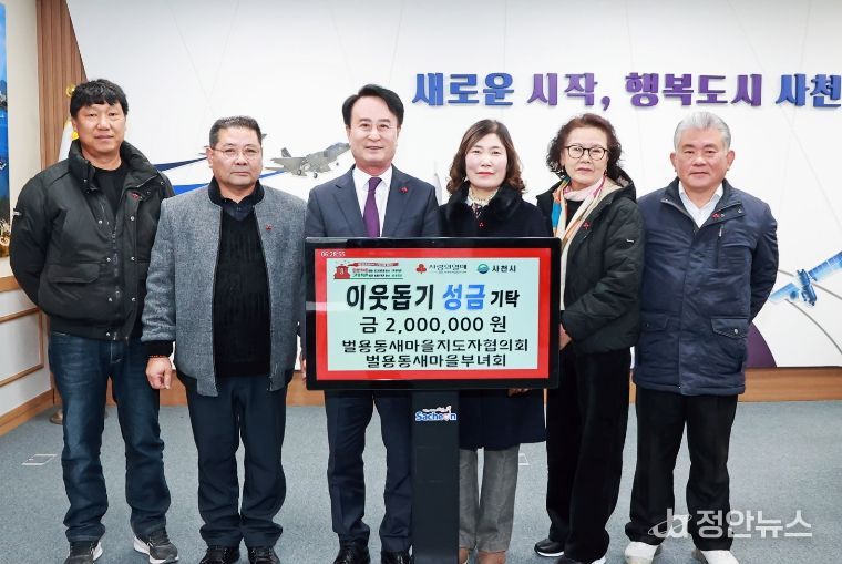 정안뉴스 김재홍 기자 | 사천시 벌용동새마을지도자협의회(회장 양호철)와 벌용동새마을부녀회(회장 김정란)는 지난 9일 사천시청을 방문해 지역사회의 어려운 이웃을 위한 성금 200만 원을 기탁했다고 12일 밝혔다.