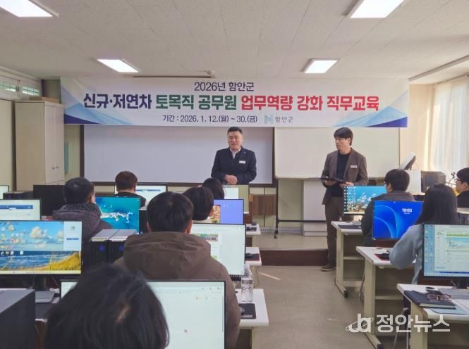 정안뉴스 김재홍 기자 | 함안군은 신규 및 저연차 시설(토목)직 공무원의 실무 역량을 높이기 위해 8급 및 9급 시설(토목)직 공무원을 대상으로 12일부터 30일까지 3주간 직무교육을 실시한다고 12일 밝혔다.