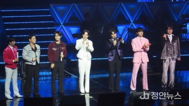 이어서 스페셜 무대 VCR 영상이 스크린에 소개되면서 TOP7은 세월 메들리곡 '고장난 벽시계'와 신나는 노래 '내나이가 어때서'로 분위기를 한껏 끌어 올렸다.