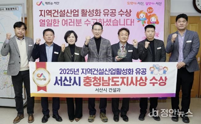 정안뉴스 황도연 기자 | 충남 서산시가 지난 2025년 지역건설산업 활성화에 기여한 공로를 인정받아 충남도로부터 지역건설산업 활성화 우수기관에 선정됐다고 밝혔다.