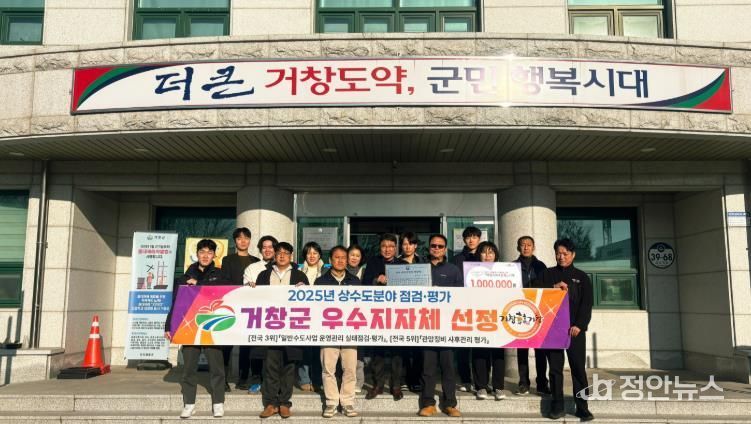 정안뉴스 김재홍 기자 | 거창군 수도사업소는 지난 ‘2025년 일반수도사업자 운영관리 실태 점검 평가 우수기관’으로 선정되어 수상한 포상금 100만 원을 아림1004운동 후원금으로 기탁했다.
