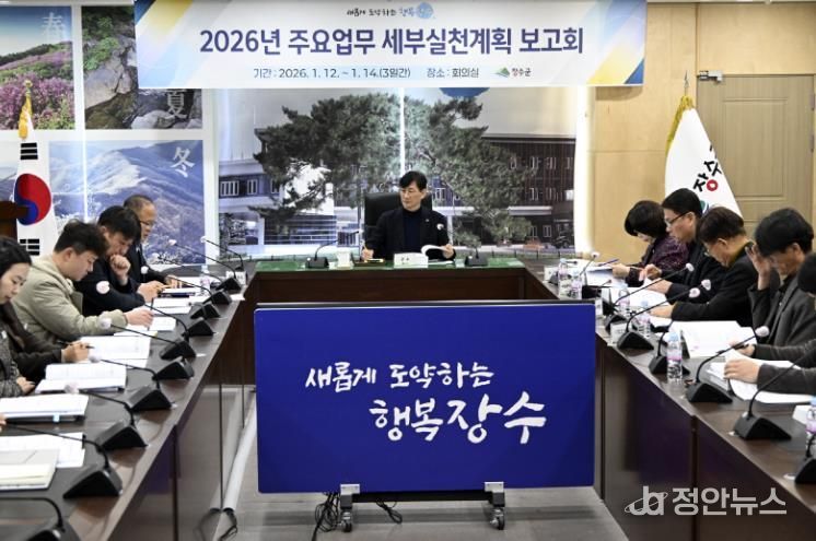정안뉴스 안정주 기자 | 장수군은 지난 12일부터 오는 14일까지 3일간 군청 회의실에서 ‘2026년 업무계획 보고회’를 열고 올해 군정의 주요 역점 사업과 핵심 과제를 공유한다고 밝혔다.