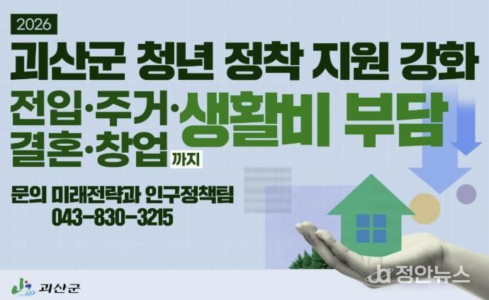 정안뉴스 황은경 기자 | 충북 괴산군은 청년층의 지역 정착을 지원하기 위해 전입 지원, 주거비 지원, 결혼·신혼부부 지원, 배움·동아리·창업 지원 등 생애 전환 단계별 맞춤형 청년정책을 본격 추진한다고 14일 밝혔다.