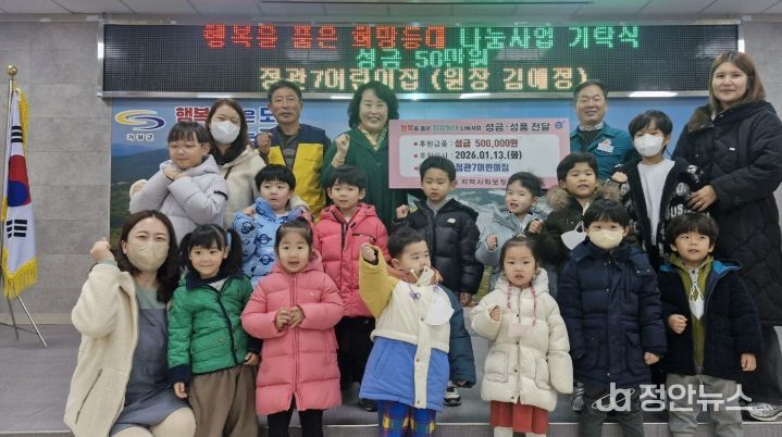 정안뉴스 황정혜 기자 | 기장군 정관읍행정복지센터는 지난 13일 정관7어린이집(원장 김애정)이 관내 취약계층 지원을 위한 성금 50만원을 기탁했다고 14일 밝혔다.