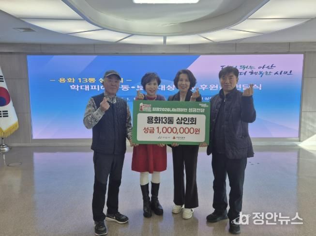 정안뉴스 황도연 기자 | 아산시는 용화13통 상인회가 지역 내 학대 피해 및 보호대상을 위해 후원금을 기탁했다고 밝혔다.
